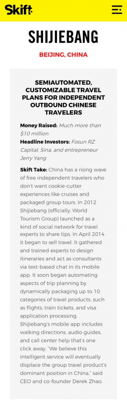 世界邦上榜SKIFT「全球最值得關注的旅遊創業公司」