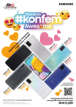 正在考慮入手 Samsung Galaxy A系列的朋友注意啦,今日Samsung就為Galaxy A 系列推出促銷活動,凡在促銷活動期間購買指定手機都能得到回扣! 這項促銷活動將從即日起至 10月18日,折扣將高達 RM100!而促銷的手機包括了 Galaxy A01、A11、A21s、A31、A51 和 A71。 ...... [閱讀更多]