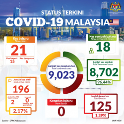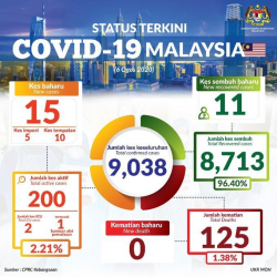 今日(8月6日),一如既往由大馬衛生部所彙報大馬新冠肺炎最新疫情數據。而截至中午12點,大馬一共新增了15宗確診,10宗為本地傳播,另外5宗為境外輸入。此外,共有11宗痊癒案例,同時並無新增死亡案例。 大馬目前累計9038宗確診、8713宗痊癒,而死亡案例持續維持...... [閱讀更多]
