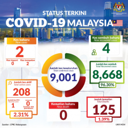今日(8月3日),一如既往由大馬衛生部所彙報大馬新冠肺炎最新疫情數據。而截至中午12點,大馬一共新增了2宗確診,2宗都為本地傳播。此外,共有4宗痊癒案例,同時並無新增死亡案例。 大馬目前累計9001宗確診、8668宗痊癒,而死亡案例持續維持在125宗,目前共有208名活躍病例。同時,有1名病患在加護病房接受治療,沒有病患需要接受呼吸器輔助治療。此外,我國目...... [閱讀更多]