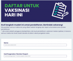 之前民眾僅能透過MySejahtera的應用程序來登記注射疫苗,而剛剛衛生總監諾希山就發貼表示,目前增加了兩項方法讓民眾更能輕易的登記接種疫苗。 首先,民眾現在可以透過官網的方式來進行註冊,同樣需要填寫個人資料、是否對疫苗接種感興趣等等的問題。 ...... [閱讀更多]