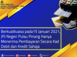 檳城JPJ將在2021年1月15日不再接受使用現金付款,僅接受Debit和Credit卡進行交易!