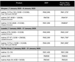 吉隆坡,2025年1月7日 – 為迎接即將到來的農曆新年,realme在Shopee、Lazada和TikTok Shop推出獨家線上購物優惠。顧客可在Shopee享受高達57%的折扣*以及額外10%的返現*,在Lazada可獲得高達RM 450的折扣以及高達10%的平台優惠券,而在TikTok Shop則有高達RM 400的折扣及返現優惠。 這是入手realme旗艦設備的絕佳機會...... [閱讀更多]