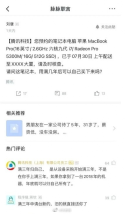 在騰訊上班福利有多好?為員工配發的16寸MacBook Pro,滿3年後直接免費送!