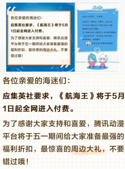 免費午餐到頭了?應版權方要求,B站、騰訊漫畫等中國平台的《海賊王》將從5月1日起開啟收費!