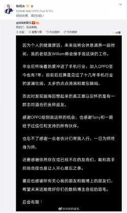 4月20日消息,今天OPPO宣布,公司全球營銷總裁沈義人因個人健康原因將卸任。 在官方公布的細節中,OPPO表示,感謝沈義人過去一段時間為OPPO營銷工作所做的努力與辛勤付出,期待他早日歸隊。 另外,OPPO也宣布了新的任命,任命劉列為全球營銷總裁,兼任中國區CMO,全面負責OPPO營銷工作,其工作向CEO陳明永彙報。 值得一提的是,沈義人也是第一時間在微...... [閱讀更多]
