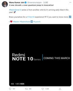 小米印度業務負責人:Redmi Note 10系列確定將於3月初印度發布!預裝MIUI 12系列、或在影像有所突破!