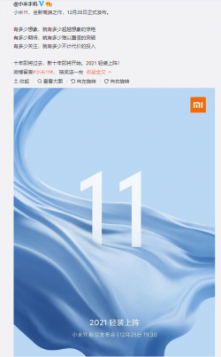 今天上午(12月22日),雷軍宣布,小米11將確定在12月28日發布,時間是當天19點30分。 今年小米11的Slogan是「2021輕裝上陣」,似乎暗示整機會比較輕薄,同時也卸下過去的印記,重新出發,「凡是過往,皆為序章,小米11將是小米新十年的第一款旗艦」。 ...... [閱讀更多]
