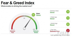 CNN恐懼與貪婪指數周三(8月19日)讀數68,表明市場處在貪婪狀態,較上一交易日下跌2點; CNN恐懼與貪婪指數周三(8月19日)讀數68,表明市場處在貪婪狀態,較上一交易日下跌2點;注:CNN恐懼與貪婪指數,和「VIX恐慌指數」差不多的功能;當CNN恐懼與貪婪指數處在貪婪狀態,相當於VIX恐慌指數處在低位,利好風險資產,不利避險資產;...... [閱讀更多]