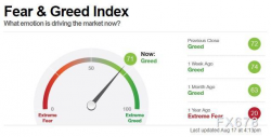 CNN恐懼與貪婪指數周一(8月17日)讀數71,表明市場處在貪婪狀態,較上一交易日下跌1點; CNN恐懼與貪婪指數周一(8月17日)讀數71,表明市場處在貪婪狀態,較上一交易日下跌1點;注:CNN恐懼與貪婪指數,和「VIX恐慌指數」差不多的功能;當CNN恐懼與貪婪指數處在貪婪狀態,相當於VIX恐慌指數處在低位,利好風險資產,不利避險資產;...... [閱讀更多]