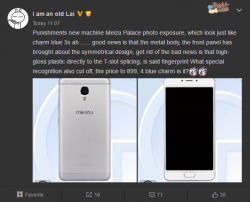 疑似魅族M4渲染圖曝光?! 隨著魅族M3s即將在本月16日在本地市場開賣後,近期又有網友@I am Old lai爆料,並洩露了魅族一款在中國工信部(TEENA)的照片,雖然目前還沒確認這款新機的型號,但推測應該是魅族M4無誤。 根據網友@I am Old lai指出,這款魅族M4將採用金屬機身以及搭配塑料材質,並採用對稱式設計,不過,據了解,這款新機將不具備指紋辨識器...... [閱讀更多]