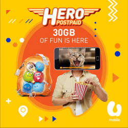 U Mobile推出延長Video-Onz+Hero 98全新後付配套 ! 今天是7月1日,也就是早期有消息指U Mobile將於今日正式公佈全新後付配套Hero P98,每月30GB流量只需RM98,而且還宣布將延長Video-Onz配套至12月31日,所以大家可以無限量觀賞線上視頻至到這年尾咯! 而且U Mobile為原來的11個視頻合作夥伴陣容,另外添加了7個合作...... [閱讀更多]