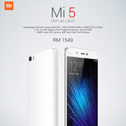 小米5於6月18日發布:售價RM 1549 小米官方昨日才透過面子書透露,小米5即將於本地發布的消息!今日官方就正式宣布,小米5將在本月18日正式發布,而且這次不再局限在網上訂購,而是可以透過全馬的Thoru授權代理商購買! 小米5外型採用極窄邊框設計,並搭載指紋辨識功能,以及採用高通驍龍820最新處理器,根據官方表示,最新處理器的性能較810快40%,但耗電量低一半。...... [閱讀更多]