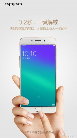 OPPO R9正面照亮相:確認搭載0.2秒快速解鎖 + 超窄邊框 繼上回Oppo在自家官方微博上載了一張宣傳圖,標題為『期待9一點,驚喜多一點』,以及之前也公佈了新機代言人為李易峰和楊冪後,隨著離3月17日發布時間越來越近,OPPO時不時就會洩露有關新機的消息或照片,讓人看得『心癢癢』!而最新的消息是,OPPO又亮出了OPPO R9正面亮屏照,並配上『0.2秒,一瞬解鎖』的...... [閱讀更多]