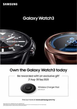 Samsung Galaxy Watch 3優惠!購買就有機會獲得價值RM239無線充電器,9月30日截止!