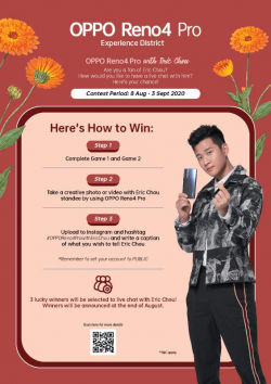 有機會和偶像聊天!OPPO Reno4 Pro有獎活動:將送出Reno4和Enco W31,還能與Eric周興哲視頻通話!9月3日截止! - Zing Gadget