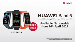 HUAWEI Band 6將在4月16日線下開賣,售RM219,免費送錶帶!參加#CanYouBendChallenge,還有機會贏取HUAWEI Band 6!