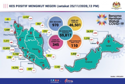 11月25日,衛生總監諾希山公布了截至中午12點大馬新冠疫情最新數據。根據最新消息指出,大馬截至中午12點,一共新增了970宗確診、2348宗治愈、4死亡,讓累計確診人數來到59817人,治愈人數來到46501人,死亡人數345宗。 #COVID19 Terkini. 25 Nov. Kes baharu hari in...... [閱讀更多]