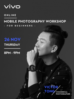 喜歡攝影,又想要增進一下攝影技術,卻找不到管道嗎?vivo就攜手馬來西亞國際商業廣告攝影師Victor Tong,於11月26日(也就是今天)晚上8點舉行一場線上攝影基礎教程(Online Mobile Photography Workshop),讓喜歡攝影的朋友一起加入! 這場線上攝影基礎教程將舉辦長達一小時。透過這場線上攝影...... [閱讀更多]