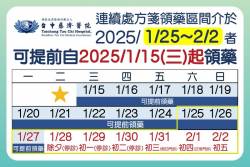 春節九天連假即將到來,拜年、走春、旅遊等活動陸續展開,各地景點與交通樞紐將湧入大量人潮。為避免疾病在假期傳播並維持慢性病患者的健康,台中慈濟醫院藥學部藥師洪培原建議,民眾應即早做好全方位防護準備,包括接種疫苗、備妥藥品及建立防疫習慣,以確保春節假期平安健康。 把握時間疫苗接種 良好衛生習慣顧健康 目前正值流感、新冠病毒及麻疹等傳染病的流行期,專家強調及早接種疫苗的重要性。由於疫...... [閱讀更多]