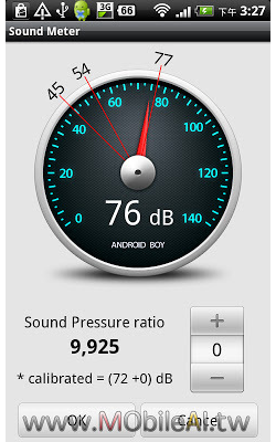 不知道您有沒有過這種經驗,在夜深人靜的時候附近傳來陣陣擾人的噪音造成困擾,這時候恨不得手邊有個可以偵測噪音有多少分貝的儀器來測試一下當做檢舉的依據,但是有多少人在家裡沒事會準備這些東西呢?如今您只要有台 Android 手機安裝下列的軟體就可以輕易達到目的了喔!! 左圖:分貝計測量使用狀況,軟體...... [閱讀更多]