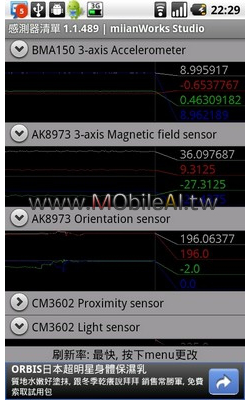 檢測手機感應器的小工具 — 感測器清單