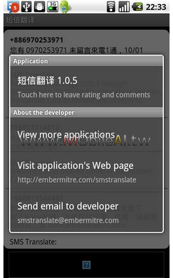 不知道在國外常駐出差的各位同學,對於收到一些看不懂語言的簡訊處理方式是如何?相信應該有蠻多人都選擇刪除,但是如果您剛好使用的是 Android 手機的話,那一定要參考今天要跟您介紹的軟體,或許可以解決您因看不懂簡訊而刪除的問題喔!! 左圖:簡訊自動翻譯的畫面。右圖:版本說明。 ...... [閱讀更多]