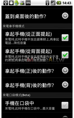 之前使用HTC HD2 系列報導的時候有個功能非常的實用,就是當鈴聲大響的時候接起手機的當下,鈴聲會自動慢變小聲,不用再慌慌張張的將鈴聲音量調低。但是自從使用 Google Nexus One 之後卻沒有內建這個功能(此時就覺得HTC在某些小工具設計的真的很貼心),於是就上網找了一下是否有類似的相關...... [閱讀更多]