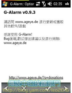 自從上次介紹了[WM5-6.1]賴床的剋星 G-Alarm 0.81 CHT 鬧鐘軟體 之後,其實官方一直有持續在更新但是更新速度太驚人了,因此Leo就沒有持續介紹了,直到現在更新速度有緩慢的趨勢,這也代表了這套免費的鬧鐘軟體越來越穩定了,因此Leo就繼續替各位介紹了,畢竟免費好用的鬧鐘軟體真的不多...... [閱讀更多]