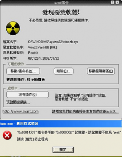 之前公司的電腦安裝avast! antivirus來當作主力的防毒軟體,LEO也覺得相安無事,不過最近有幾台電腦跳出下面的警告視窗,而且是每天開機都會跳一次,LEO的直覺反應就是中毒了~~但是刪不掉才會每次開機都會跳出,於是開始更換成 [PC-軟體]防毒軟體AntiVir 7.0 –俗稱的小紅傘來做...... [閱讀更多]
