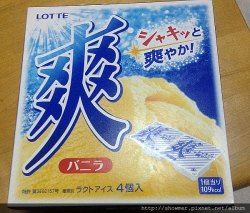 好~~~持續 7-11 冰品同品項第二件減 100 元 meiji 明治 宇治金時煉乳抹茶紅豆冰棒 這話題 讓我們繼續基於 進口冰品同品項第二件減 100 的計劃之下 挖掘還有哪種冰品是值得一吃的 這次要端給大家的是...來自 日本 樂天集團 (跟網拍那家無關) 的產品 LOTTE 爽 ! 香草冰淇淋 如圖所見的,一次夠買就是如此的一大...... [閱讀更多]