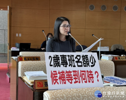 台中市議會定期大會教育文化業務質詢,市議員張廖乃綸關切西屯區幼幼班名額嚴重不足的議題,並爭取台中大巨蛋落腳水湳經貿園區,此外,也要求教育局盡快讓新社高中射擊訓練靶場啟用。 市議員張廖乃綸說,公幼的2歲專班(俗稱幼幼班),長期以來名額稀少,她過去多次提醒教育局要加速增設幼幼班,但狀況似乎沒有明顯改善,家長候補排隊苦等的情況越來越嚴重。截至3月底為止,西屯區2歲幼兒...... [閱讀更多]