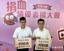 高雄捐血中心113年度捐血績優表揚大會台南場,4月30日下午在成功大學光復校區成功廳隆重舉行,表揚嘉南地區捐血績優學校9所、捐血達1,000袋以上機關社團69單位、績優國軍部隊3單位、熱心推動捐血活動10個團體以及800位捐血達百次以上分離術捐血人、2,324位捐血達百次以上全血捐血人,感謝他們多年來對捐血運動無怨無悔的奉獻,使得血液能源源不斷,救助傷病友寶貴的生命...... [閱讀更多]