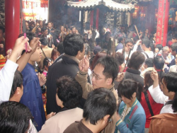 農曆元月初九是「天公生」,大甲鎮瀾宮前晚子時即準備三牲五禮等精緻供品,慶祝玉皇大帝誕辰,全體董監事主祭,很多信眾陪祭,場面十分熱鬧。 農曆元月初九日是玉皇大帝生日,民間俗稱「天公生」,自古就有家戶拜天公的習俗,大甲鎮瀾宮平時都在大殿拜媽祖等議式,而前晚上十一點子時,祭奉玉皇大帝就在天公爐前舉行,排有精緻且豐盛的三牲五禮,為玉皇大帝祝壽,董監事與信眾虔誠地叩拜,場...... [閱讀更多]