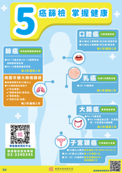 國際抗癌聯盟(UICC)訂定每年2月4日是「世界癌症日」,癌症已連續42年蟬聯國人十大死因首位,透過早期篩檢、早期治療,可有效降低死亡率及病程負擔,桃園市政府衛生局於113年結合478家醫療院所積極推動5項公費癌症篩檢及「桃園市擴大肺癌篩檢計畫」,共服務45萬3,138人次,找出確診口腔癌32人、大腸癌266人、子宮頸癌292人、乳癌410人及肺癌161人,為癌症防...... [閱讀更多]