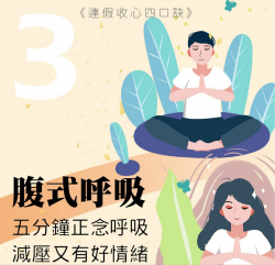 ▲高市衛生局教導民眾四大口訣,擺脫收假症候群。 連續九天的春節假期即將結束,隨著年後開工日的來臨,不少上班族和學生可能會出現情緒低落、提不起勁,甚至伴隨失眠或食慾不振等「收假症候群」的現象。高雄市政府衛生局提醒,假期結束後適時進行身心調適,不僅有助於快速回歸日常,也能提升生活與工作的正向能量。今年特別整理出四大收心口訣,幫助民眾迅速調適身心,以最佳狀態迎接新年...... [閱讀更多]