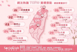 每年春季,粉嫩的櫻花便會如同夢幻畫筆,將大地妝點得繽紛動人,吸引民眾紛紛踏出家門,沉浸在夢幻的粉色花海中。除了日本、韓國,台灣從1月下旬至3月中旬,北、中、南各地也有許多迷人的賞櫻秘境,綻放著專屬春天的詩意美景。其中,又以哪些賞櫻仙境最受網友青睞呢?就讓我們一起來感受春日花開的浪漫吧! 《Social Lab社群實驗室》本次透過《OpView社群口碑資料庫》追蹤...... [閱讀更多]