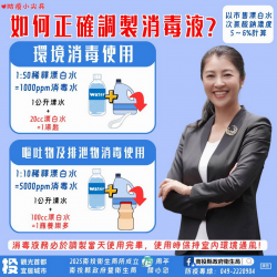 正確調製消毒液很重要。(衛生局提供) 國內腸病毒疫情持續下降,惟仍處於流行期,依據疾管署監測資料顯示,1月12日至1月18日門急診就診計9,724人次,較前一週(1萬2,529人次)下降22.4%;南投縣門急診就診計210人次,較前一週(304人次)下降30.9%,國內疫情呈下降趨勢。 縣府衛生局表示,國內腸病毒疫情雖然持續下降,但農曆春節將至,親友團聚、...... [閱讀更多]