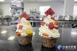 極富年味的春節杯子蛋糕。 弘光科技大學利用寒假辦理校園開放日「弘光暖冬派對.校園一日快閃」活動,邀請校友、社區居民帶著小朋友,一起DIY寵物潔牙棒、設計AR影像、製作春節杯子蛋糕,活動內容豐富,現場洋溢大朋友、小朋友的歡笑聲。活動結束,學員拿著親自動手做的寵物潔牙棒、充滿年味的小蛋糕回家,每個人都開心極了。 食科系老師程國恩(左一)教做春...... [閱讀更多]