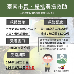 1/21地震導致南市棗、楊桃受損 即日起至2/11受理現金救助申請