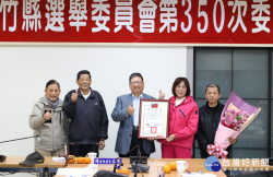 湖口勝利村長補選羅芬蘭出線 楊文科頒當選證書恭賀