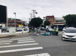 桃園市中壢區今(8)日上午8時54分許,一名51歲蔡姓男子駕駛自用大貨車行經中華普忠路口往中壢方向行駛時,才剛由普忠路要左轉中華路,大貨車附加吊桿就不慎扯到路邊號誌電線,導致3處交通號誌被扯斷,號誌桿倒下的瞬間,還差點砸到一旁經過的車輛,所幸沒有造成任何傷亡。 大貨車附加吊桿就不慎扯到路邊號誌電線,造成交通號誌應聲倒下。圖:讀者提供 中壢警分局表示,警方獲...... [閱讀更多]