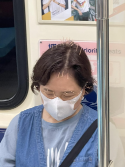 婦頭插38針搭捷運織毛線 身分曝光竟是前議員、網紅媽