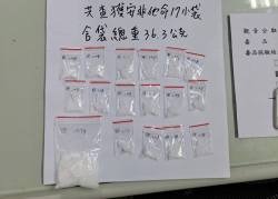 桃園市觀音區今(7)日上午6時許,有民眾住家外被一台汽車擋住出入口,影響通行,民眾遂通知大園警分局協助處理,員警到場查詢車籍資料,發現該車被通報為侵佔車輛,便於現場埋伏等候,待駕駛43歲簡姓男子出現時,立即上前盤查,發現簡男不僅是毒品通緝犯,身上還藏有17包安非他命,車內還有兩面偽造的車牌,於是當場將他逮捕。 警方在簡男身上搜出17包安非他命。圖:讀者提供 ...... [閱讀更多]