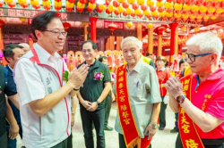 桃園市長張善政今(29)日上午前往楊梅區,出席「楊梅奉天宮欣逢關聖帝君1865年聖壽千秋祝壽慶典法會」。張善政表示,今日為關聖帝君1865周年聖誕,特別代表市府前來祝賀,同時感謝奉天宮熱心地方公益,並將透過建構一條刻劃關聖帝君忠義故事的文化走廊,持續美化環境,祝福宮內香火越來越鼎盛,並祈求庇佑楊梅區風調雨順、鄉親身體健康、家庭幸福和樂。 桃園市長張善政感謝奉天宮熱心地方公益。圖:市...... [閱讀更多]