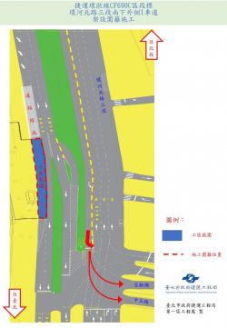 為配合捷運環狀線北環段CF690C標辦理逃生豎井B(士林端)工程施作,將於114年1月10日6時起於士林區環河北路三段封閉南向外側1車道(近重陽橋堤防處)架設圍籬施工,施工範圍如附圖。 施工期間環河北路往南左轉百齡橋及中正路車輛,請行駛調撥車道(社中街至中正路),另為避免進入本工區擁塞路段,往士林方向的用路人可以在洲美快速道路改道福國路引道,或下洲美快速道路後左轉延平北路六段前往...... [閱讀更多]