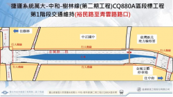 為配合捷運萬大-中和-樹林線(第二期工程)CQ880A區段標LG10車站地下結構連續壁施工,臺北市政府捷運工程局第二區工程處將於113年12月31日起於土城區金城路2段(裕民路至青雲路間)進行道路中央施工圍籬架設作業,雙向各維持2個車道通行,圍籬架設範圍如附圖。 本階段工程施作期程預定自113年12月31日起至114年4月30日止,請用路人行經工區配合依速限行駛,並遵循導引標...... [閱讀更多]