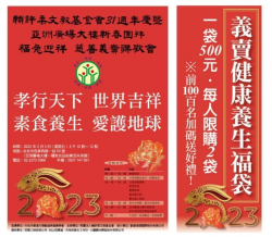 記者陳愛金 / 台北報導 財團法人賴許柔文教基金會為慶祝成立31週年,訂於2/3(五)上午舉行週年慶義賣聯歡會,並由志孝股份有限公司贊助紫黑米、黑豆茶、養肝茶、香菇香鬆、猴頭菇香鬆等多種美味優質健康素食福袋義賣,加碼送優惠給前100名購買者,其中,前30名購買者可獲得松山慈惠堂王母娘娘加持的招財錢母,當天上午9點半在台北市忠孝西路一段50號(亞洲廣場大樓一樓新光站前樂活未來館)開賣...... [閱讀更多]
