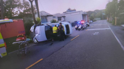 清晨連撞2小貨車!八德小客車慘翻覆路旁 - 桃園電子報