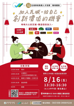 勞動部桃竹苗分署攜手瓦城餐飲 8/16舉辦中高齡職場體驗暨徵才活動 - 桃園電子報
